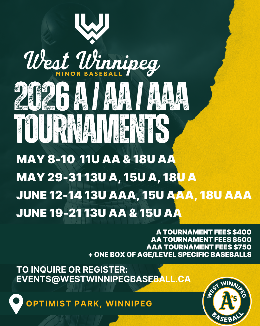 To inquire or register contact: events@westwinnipegbaseball.ca
